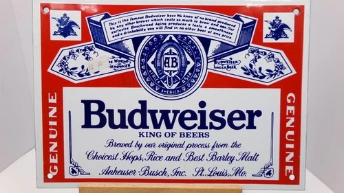 Vintage/Retro Budweiser Metal Enamelled Pub Bar Sign 1990s 10in by 7in