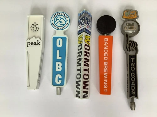 Beer Tap Handles: Lot of 5-Peak, Wormtown, OLBC, Banded Brewing & Two Roads.