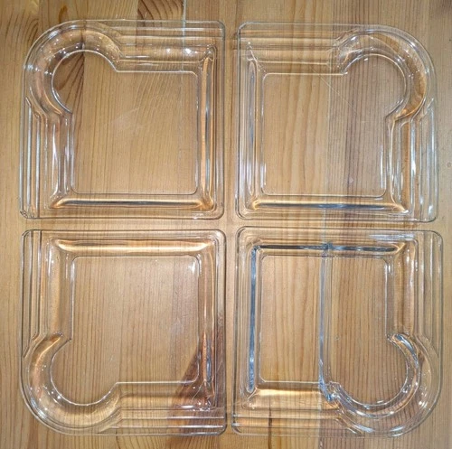 Vintage Art Deco 7" Square Clear Glass Set 4 Saucers Serving Divided w/Cup Space