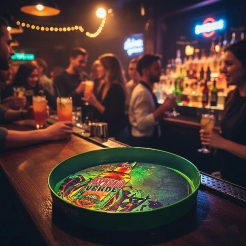 Desperados Verde Beer Tequila Green Hard Plastic Round Serving Pub Bar Tray