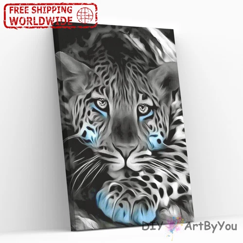 Paint By Numbers Kit White Leopard Animal Framed Decor Beginner Canvas Oil Brush