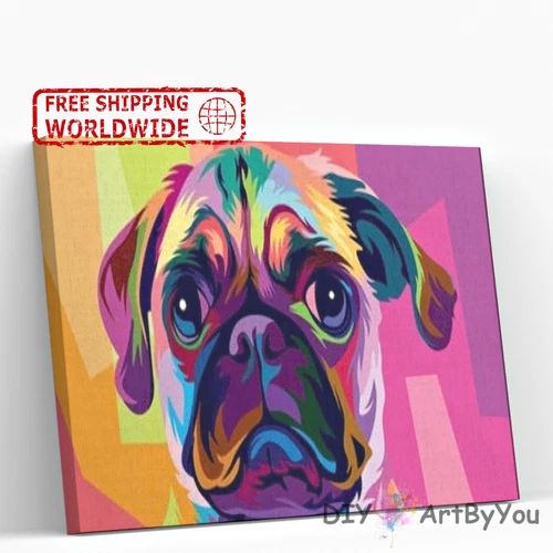 Paint By Numbers Kit Dog Animal Abstract Draw Decor Canvas Beginner Kids DIY Art