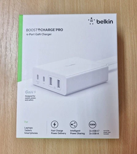 Belkin 4 Port GaN Charger 108W - BoostCharge Fast Charging Station USB-C, USB-A