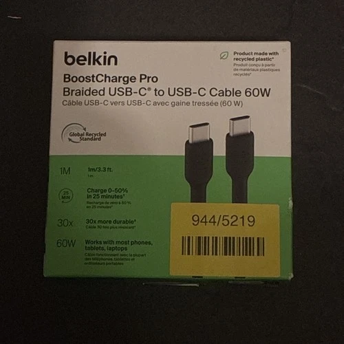Belkin BoostCharge Pro Flex Braided USB C charger cable, USB-IF certified 1m