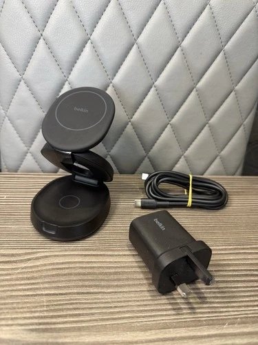 Belkin BoostCharge Wireless Foldable Charger, 2-in-1, 15W Qi2, MagSafe, 30W PSU