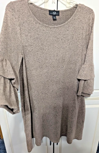 AGB Sweater Dress Women Size Small 3/4 Bell Sleeve Gray/Pink/Brown Color Pockets