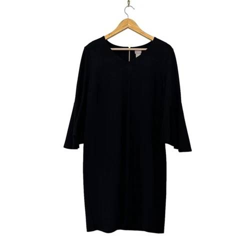 Chicos Ponte Sheath Dress Black Flare Bell Sleeve Zipper Women's Sz 0.5 Small