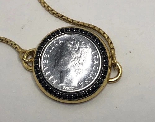 Bellezza 100 Lira Coin Black Spinel Frame Bronze Bracelet