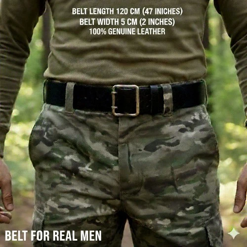 LACK LEATHER BELT HEAVY DUTY THICK DOUBLE TONGUE BUCKLE GENUINE COW HIDE MEN'S