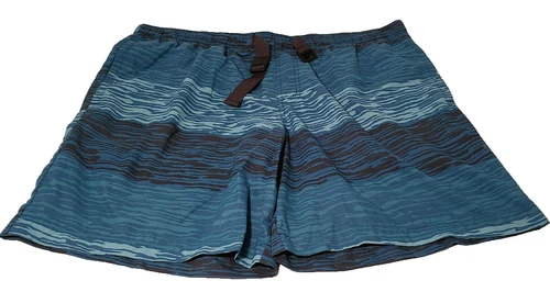 Columbia Omni-Shade Men L Board Shorts Teal Wave Print Clip Belt EUC UPF Sun