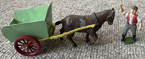 Antique Lead Benbos Farm Hay Cart, Horse And Labourer c1930s