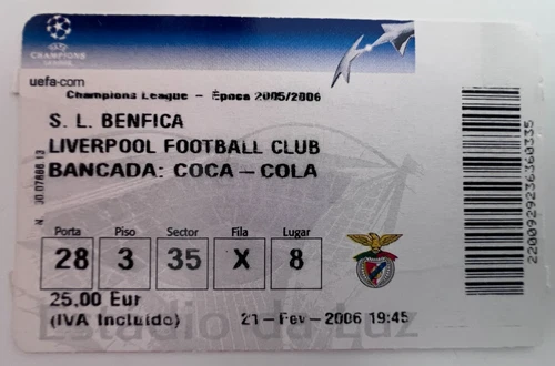Benfica v Liverpool 2006 Champions League Ticket – Lisbon – Excellent Condition