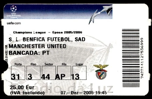 Ticket 2005 SL Benfica vs. Manchester United Champions League 44128