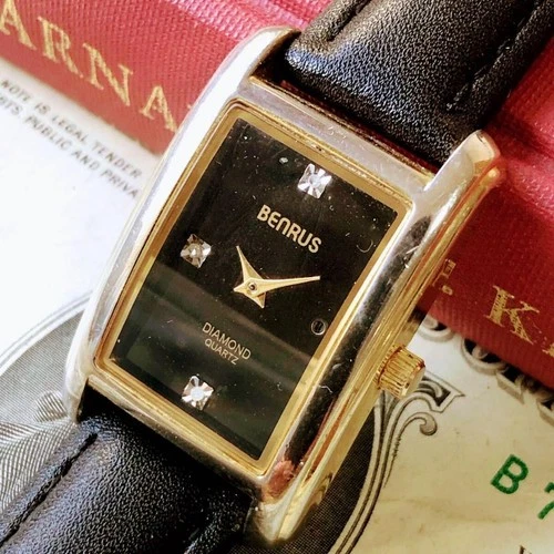 BENRUS QUARTZ Swiss Made Diamond Wristwatch 1990s Unused Unisex 32mm