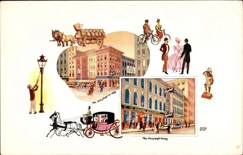 The Berghoff Restaurant Chicago IL Art Postcard 1898 vs Today Peter Diem Chrome