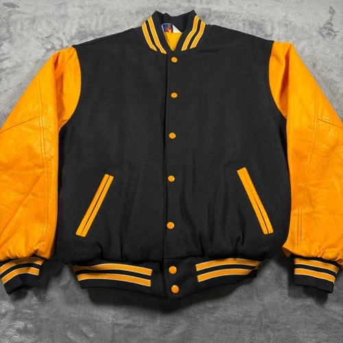Vintage Rennoc BernzOmatic Bomber Jacket Mens Large Black Yellow Snap Front