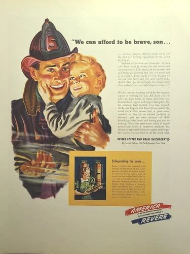 Revere Brass Copper Brave Firefighter Best Equiment Boy Vintage Print Ad 1941