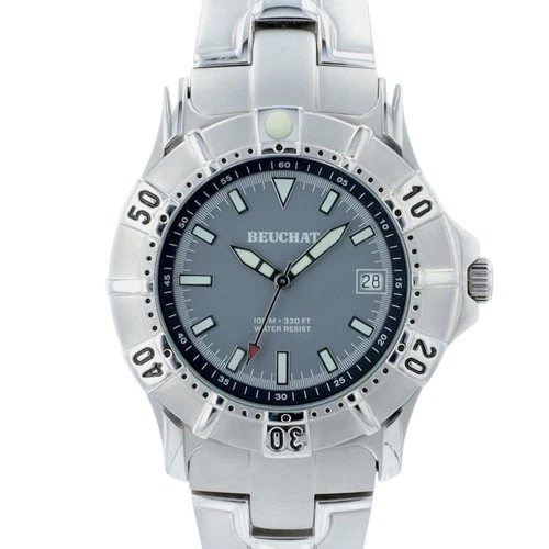 Beuchat Mens Watch Grey Dial Swiss Steel 100M Diver Quartz Date