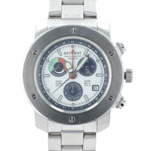 Beuchat Travel Master Mens Watch Swiss 200M Steel Multi Function Alarm Date