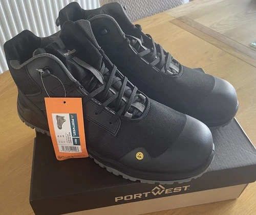 PORTWEST FE01 Bevel Mid Safety Boot, Black/Grey Size 12