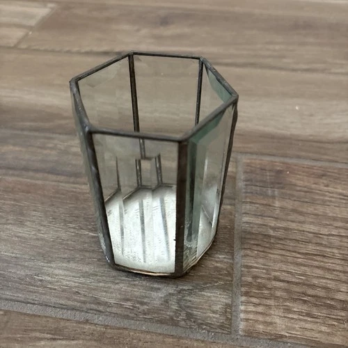 Beveled Leaded Glass Pen Holder 6 Sided Hexagon