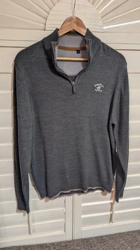 Beverly Hills Polo Club Grey Vintage Quarter-Zip Pullover Size Large