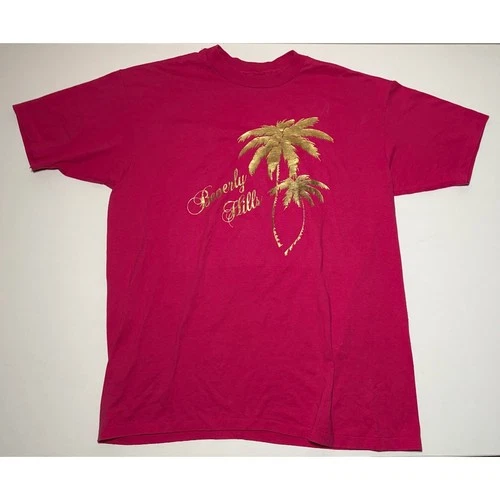 Vintage Single Stitch Beverly Hills T-Shirt | Pink/Gold | XL