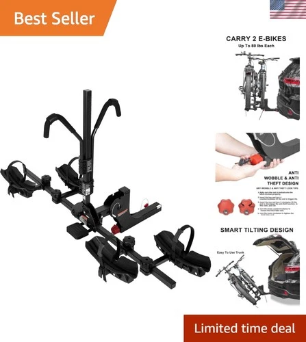 2 E Bike Rack Hitch Mounted, Wobble Free Smart Tilting Folding 2 Bicycle Elec...
