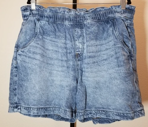 Lane Bryant Plus Size 12 Acid Wash Denim Shorts Elastic Waist Retro Festival Hip