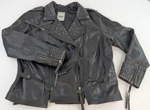 HARLEY DAVIDSON Jacket Riding Gear Womens 2XL Genuine Leather Studded 97101-16VW