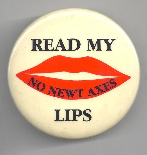 Newt Gingrich READ MY LIPS Pin ~ No NEWT AXES pinback button