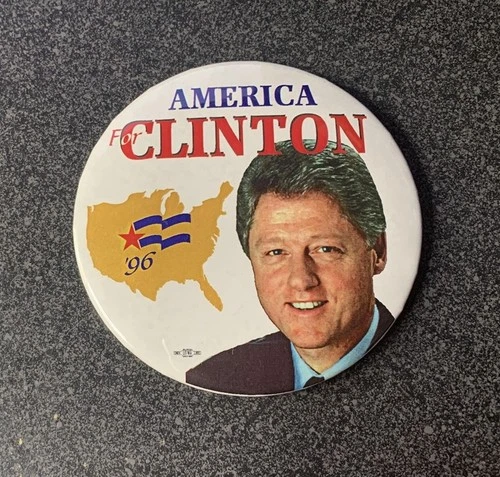 1996 96 America for BILL CLINTON 3" political campaign button / pin