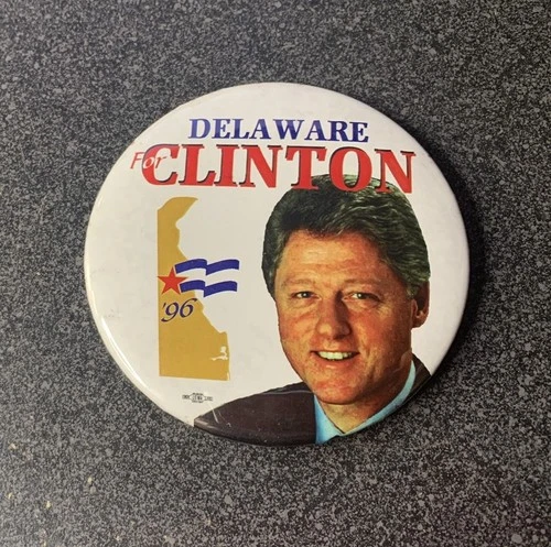 1996 96 Delaware for BILL CLINTON 3" political campaign button / pin