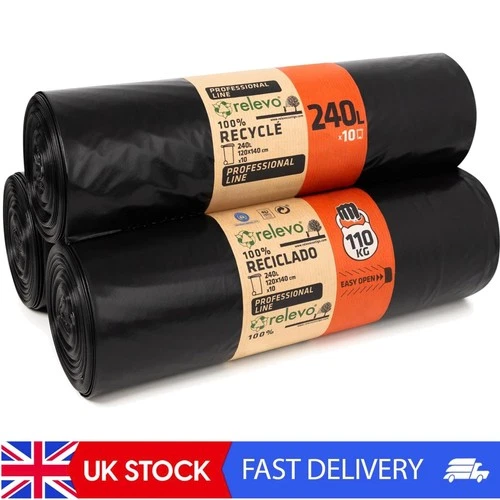 240L Heavy Duty Bin Bags - Reusable Black Wheelie Bin Liners, Leak-Proof & St...