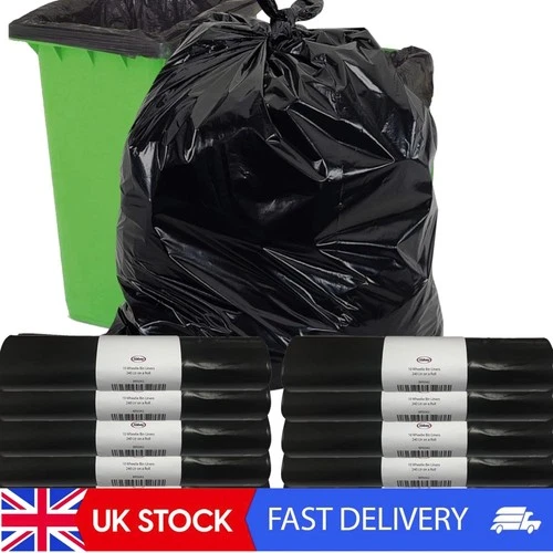 Black 240L Wheelie Bin Liners 100 Pack Heavy Duty Rubbish & Waste Disposal Bags