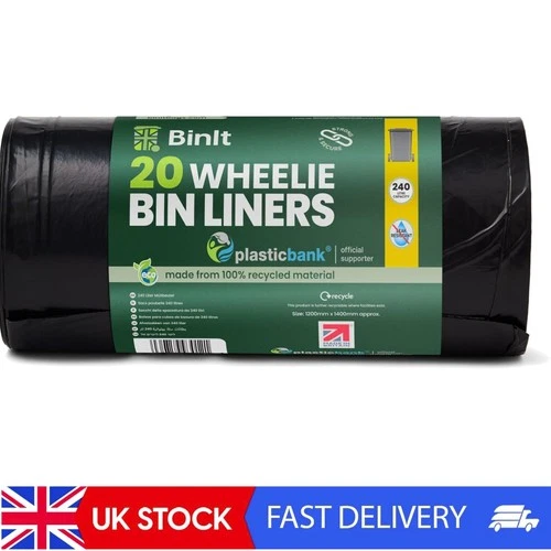 Strong 240L Wheelie Bin Liners 20 Pack Eco-Friendly Tear-Resistant Waste Sacks