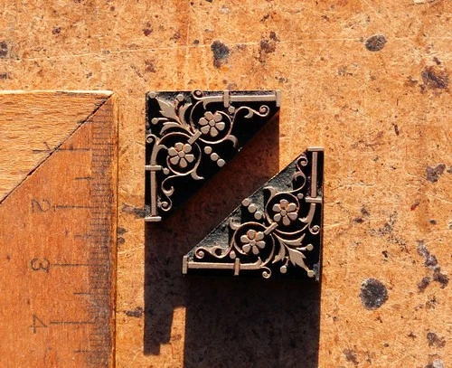 2x brass ornament bookbinding Art Nouveau Deco embossing bookbinder corner ´´.