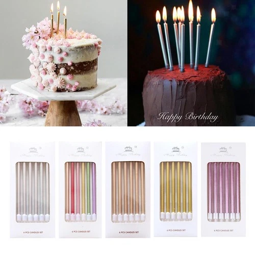 6 Pieces Birthday Candles in Holders Tall Cake Toppers Long for Party Baby