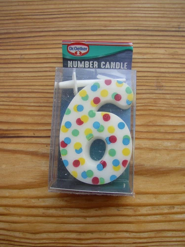 Number 6 Numeral Party Birthday Cake candle+spike White Spots Spotted Dr Oetker