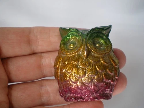 Multi colour Bismuth Owl, 4.5 cm tall x 4 cm wide x 1.7 cm, weighs 107 grams