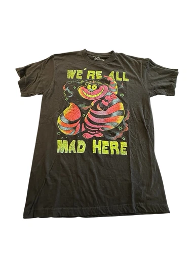 Disney Cheshire Cat We're All Mad Here Graphic Black T-Shirt Size Medium EUC