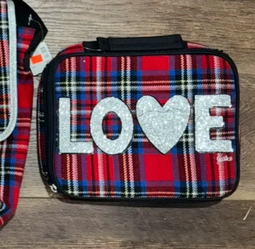 NWT Justice LOVE plaid flannel Lunch box ONLY