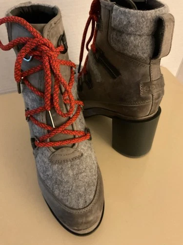 Sorel Women Gray Leather Platform Waterproof Chelsea Heel Blake Boots 8/39UK 6