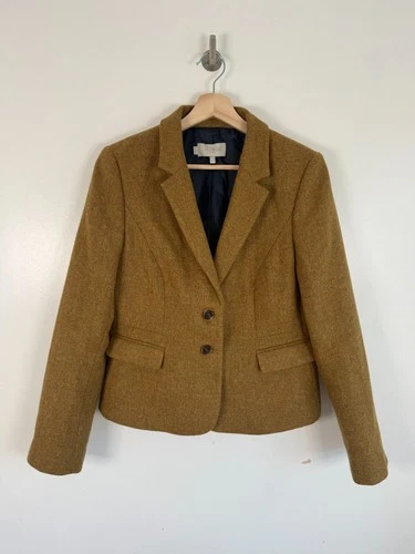 Hobbs Blazer UK 14 Mustard Brown Tweed 100% Wool Jacket Blake Hackness Suit