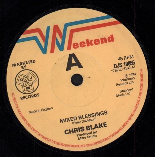 Chris Blake Mixed Blessings 7" vinyl UK Weekend 1978 solid label design in