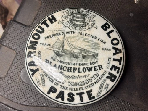 60720 Old Vintage Antique Printed Pot Lid Bloater Paste Blanchflower Yarmouth