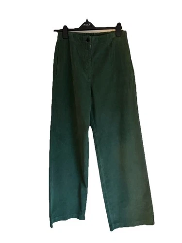 Pomandere Women’s Wide Leg Trousers EU 36 UK 8-10 Green Needlecord High Rise