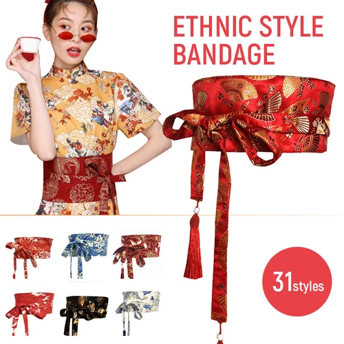 New Women Japanese Floral Bronzing Kimono Obi Wide Belt Waistband Yukata Corset