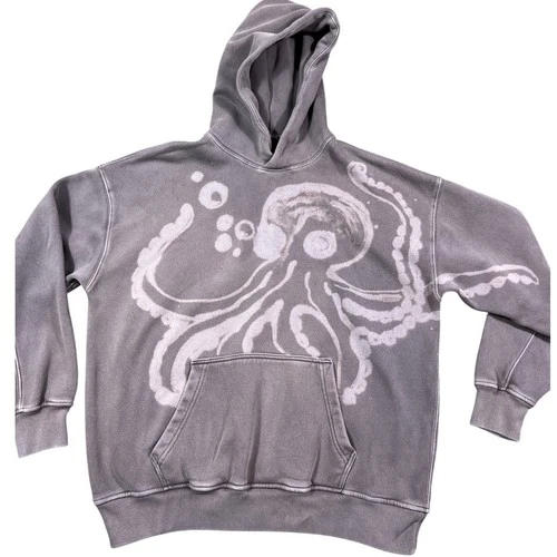 Abercrombie & Fitch Oversized Bleached Octopus Graphic Hoodie Grey Womens Small