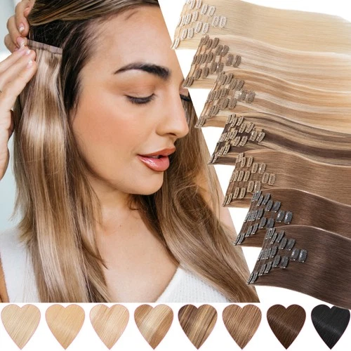 Invisible Clip in Soft Real Remy Human Hair Extensions 8Piece 18Clips Full Head